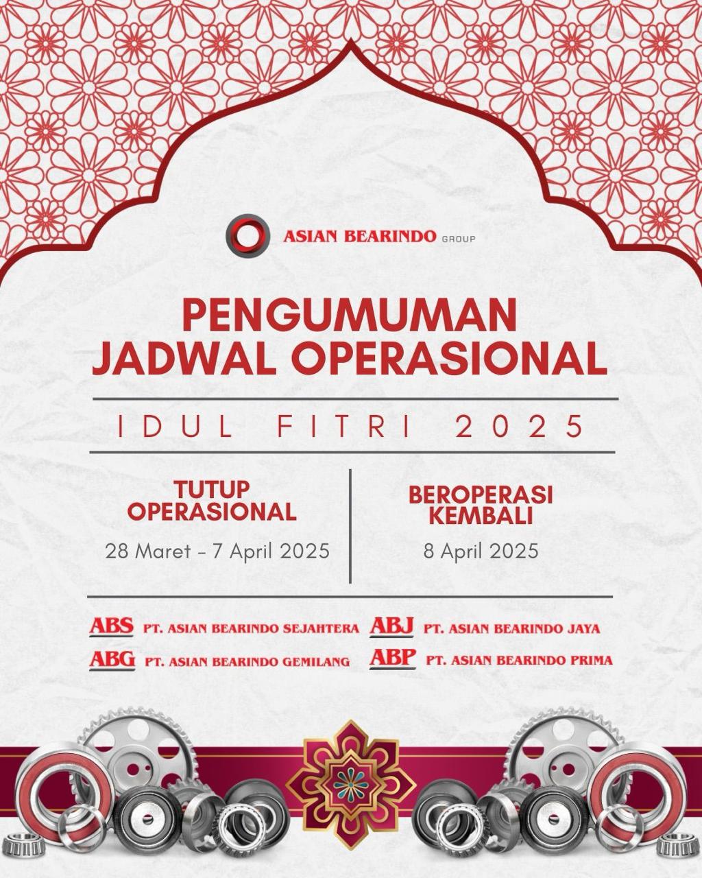 Berikut kami informasikan jadwal operasional kami sehubungan dengan perayaan Hari Raya Idul Fitri 2025: